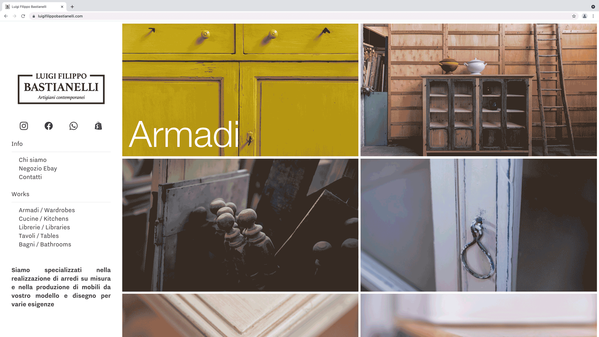 Rebranding, nuovo sito, produzione immagini, contenuti social e artwork Instagram per il laboratorio di artigiani, mobilieri, antiquari di San Giustino (Perugia). Cliente: Luigi Filippo Bastianelli.